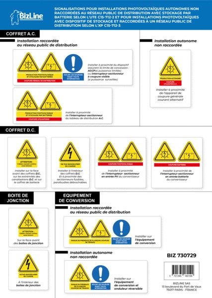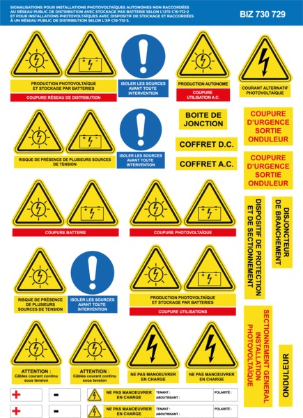 Kit de signalisations PV adhésives installations raccordées ou non avec stockage