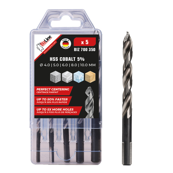 Coffret de 5 forets métaux HSS COBALT