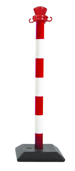 Poteau en ABS monobloc blanc/rouge avec base à lester, polyvalent pour balisage et information.