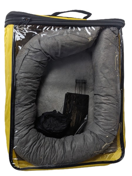 Kit d’intervention absorbant : sacoche sérigraphiée contenant 20 feuilles 40x50 cm, 1 boudin Ø8 cm x 1,2 m, 1 paire de gants et 2 sacs de récupération. Composition universelle pour absorber hydrocarbures, huiles, peintures, produits chimiques. Idéal prévention et curatif sur sites industriels.